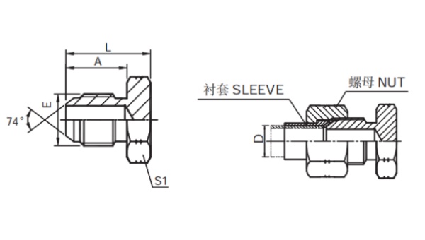 注:ナットとスリーブは別途注文が必要です。管の直径Dがメートル法の場合、ナットとスリーブはそれぞれNB200、NB500を選択してください。管の直径がインチの場合、ナットとスリーブはそれぞれNB200、NB300を選択してください。